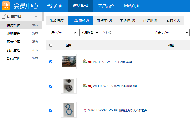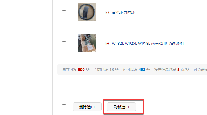 2.選擇待刷新信息:在信息列表中,勾選需要更新時間的供應信息。