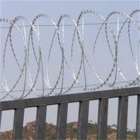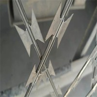 場刀片刺繩大渡口電鍍鋅刀片刺繩 電鍍鋅刀片刺繩(razor barbed wire)也稱為刀片刺絲、直線型刀片刺繩,是一種隔...