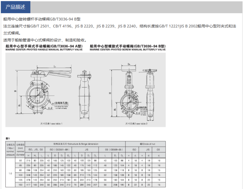 船用中心旋轉螺桿手動蝶閥GB/T3036-94 B型