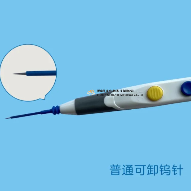 切割與凝血:鎢針常與高頻手術(shù)設(shè)備配套使用,通過(guò)高頻高壓電流對(duì)組織進(jìn)行加熱,實(shí)現(xiàn)切割和止血的目的。這種技術(shù)取代了傳統(tǒng)的機(jī)械手術(shù)刀,提高了手術(shù)的精確性和安全性。