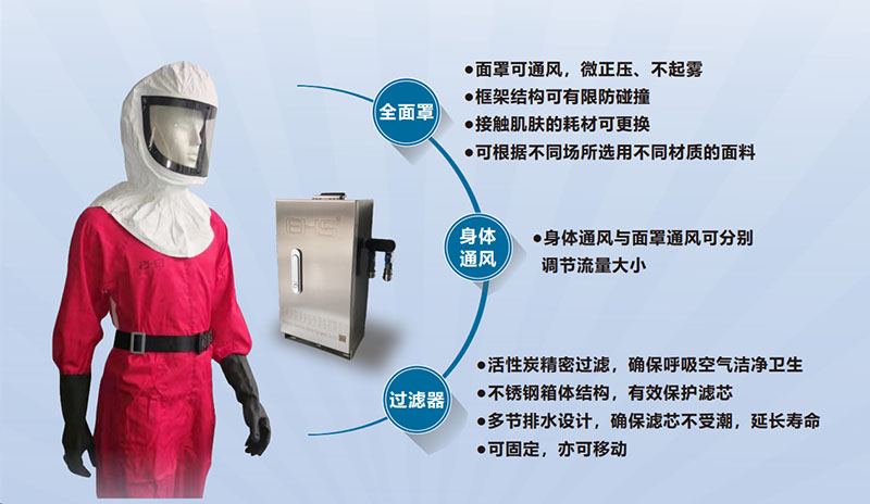 過(guò)濾式全面罩與隔離式供氣全面罩的區(qū)別:首先兩者對(duì)整個(gè)面部(含眼睛、臉部)都能起到防護(hù)作用,但隔離式供氣全面罩能對(duì)整個(gè)頭部及頸部都能起到防護(hù)作用,同時(shí)還能給身體控溫加濕,這都是過(guò)濾式全面罩所不具備的。另外過(guò)濾式全面罩主要是利用濾毒盒(及濾棉)來(lái)過(guò)濾有毒氣體及粉塵顆粒物等,保護(hù)時(shí)長(zhǎng)比較有限;隔離式供氣全面罩主要通過(guò)將壓縮氣源經(jīng)精密過(guò)濾后,通過(guò)軟管引入到全面罩以供呼吸,另一部分氣體通過(guò)調(diào)節(jié)閥引到內(nèi)置空調(diào)服以實(shí)現(xiàn)身體降溫。面罩通風(fēng)及身體通風(fēng)可分別調(diào)節(jié)流量。提供安全呼吸氣體的同時(shí)提升舒適度。是集呼吸防護(hù)、身體降溫、全面隔離三位一體的一整套個(gè)體工程安全防護(hù)方案,可以有效隔絕車(chē)間現(xiàn)場(chǎng)的污濁空氣,同時(shí)提升施工作業(yè)的舒適度。使用該面罩不受環(huán)境污染程度限制,還可以源源不斷的供給使用者新鮮的空氣。