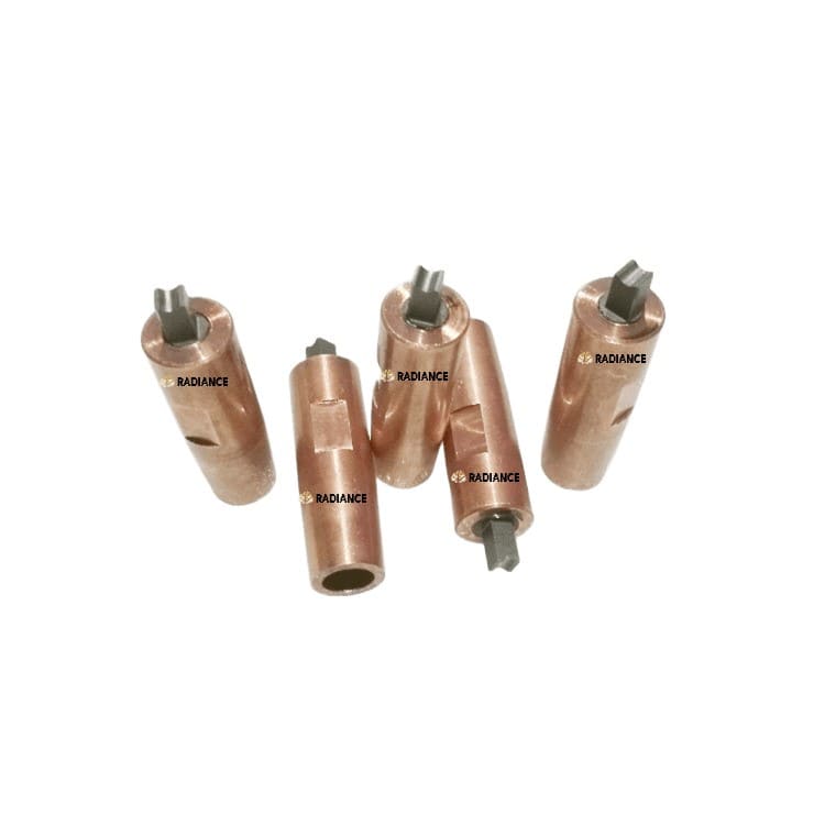 電極材料:電阻焊電極的材料應(yīng)具有較高的導(dǎo)電性和熱傳導(dǎo)性,同時(shí)還應(yīng)具備一定的耐磨性和熱穩(wěn)定性。常用的電極材料有銅和銅合金,如銅鉻合金、銅鎢合金等,每種材料都有其獨(dú)特的物理特性,適用于不同的應(yīng)用場(chǎng)景。