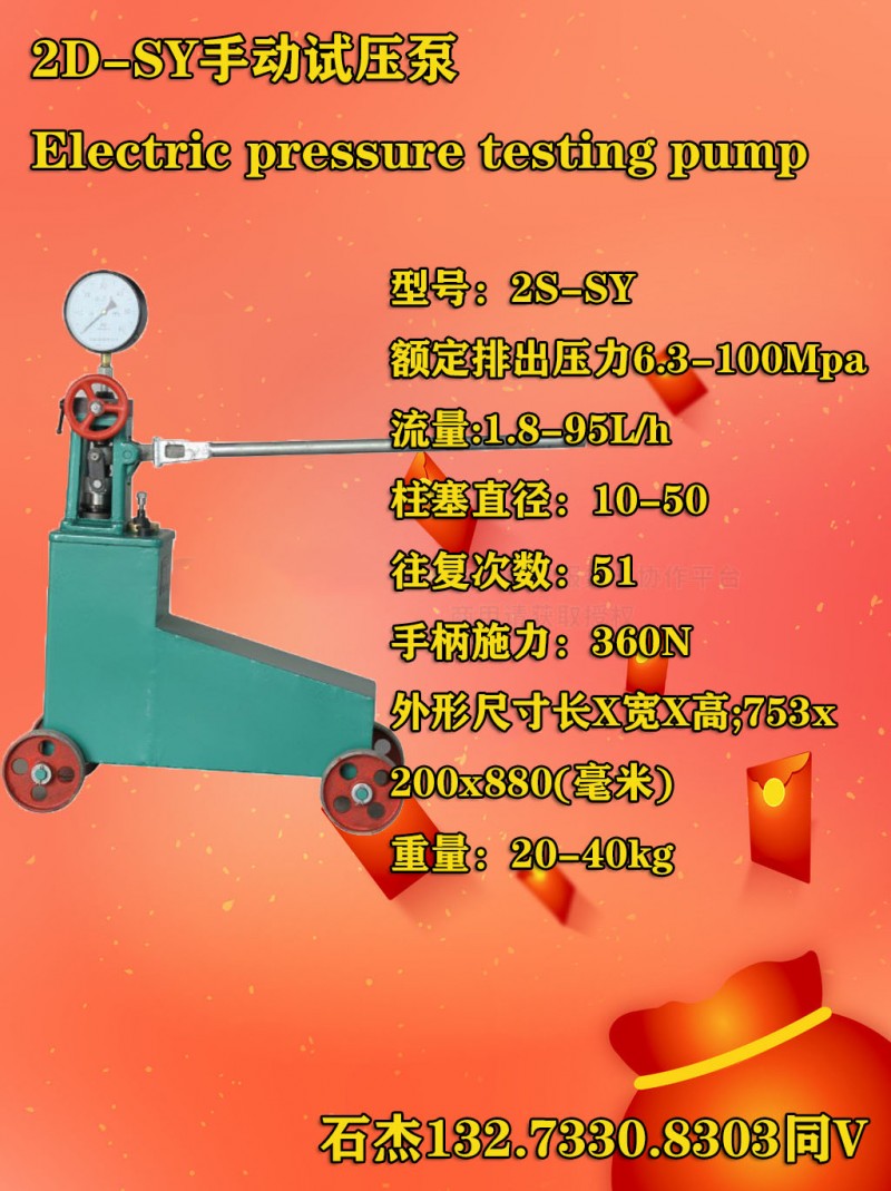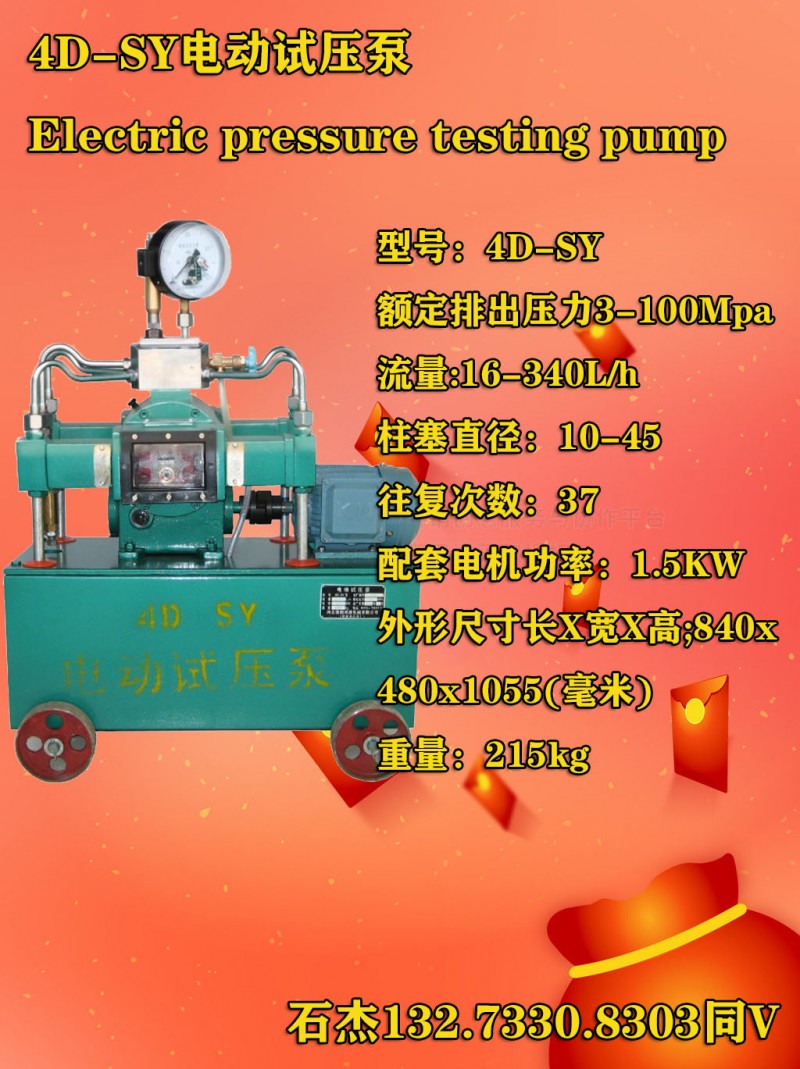 電動試壓泵是一種**各類壓力容器、管道、閥門、鍋爐、鋼瓶、消防器材等作水壓試驗和實驗室中獲得高壓液體的檢測設備。