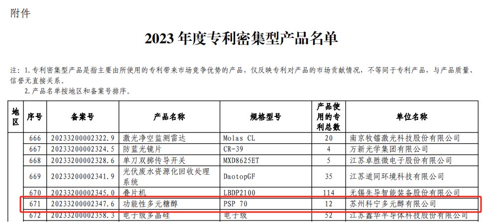 近日,中國專利保護協會公示2023年度專利密集型產品認定名單,我司的“功能性多元糖醇”通過了專利密集型產品認定,標志著公司主要核心產品在專利轉化應用上又邁上一個新臺階,更是對公司未來產品研發和專利申報提出了更高的要求.