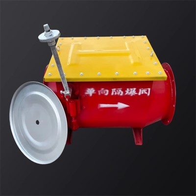 單向隔爆閥正常用于除塵器或旋風分離的入口管道上,是一種簡單、經濟可-靠的的隔爆產品,主要用來隔斷設-備內部暴炸后產生的火焰和沖擊波傳到上游的管道和設備。在操作過程中,單向隔爆閥的閥瓣由管道內正常工作的氣流打開或者處于常開狀態。在被受保護的設備內部發生暴炸的情況下,隔爆閥的閥瓣受沖擊波的沖擊而關閉。