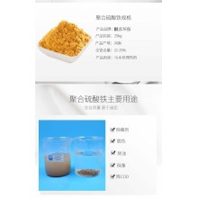 4、聚合硫酸鐵用量可根據原水的不同渾度,測定佳投藥量,一般混濁(濁度在100-500mg/L)水,每千噸使用固體聚合硫酸鐵30-50公斤,非飲用水高濁度工業污水可適當增加投加量 。