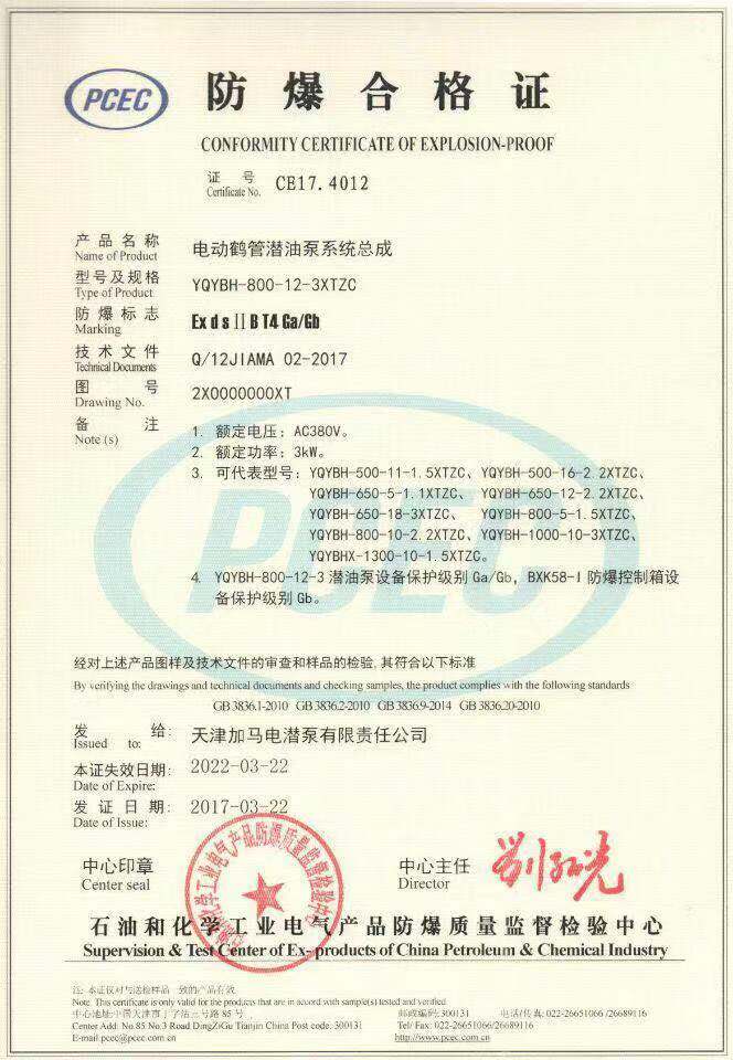 3.綠牌潛泵采用隔爆型外殼加澆封型的特殊防爆型式,達到設備保護等級為Ga級,可以在“0”區使用。