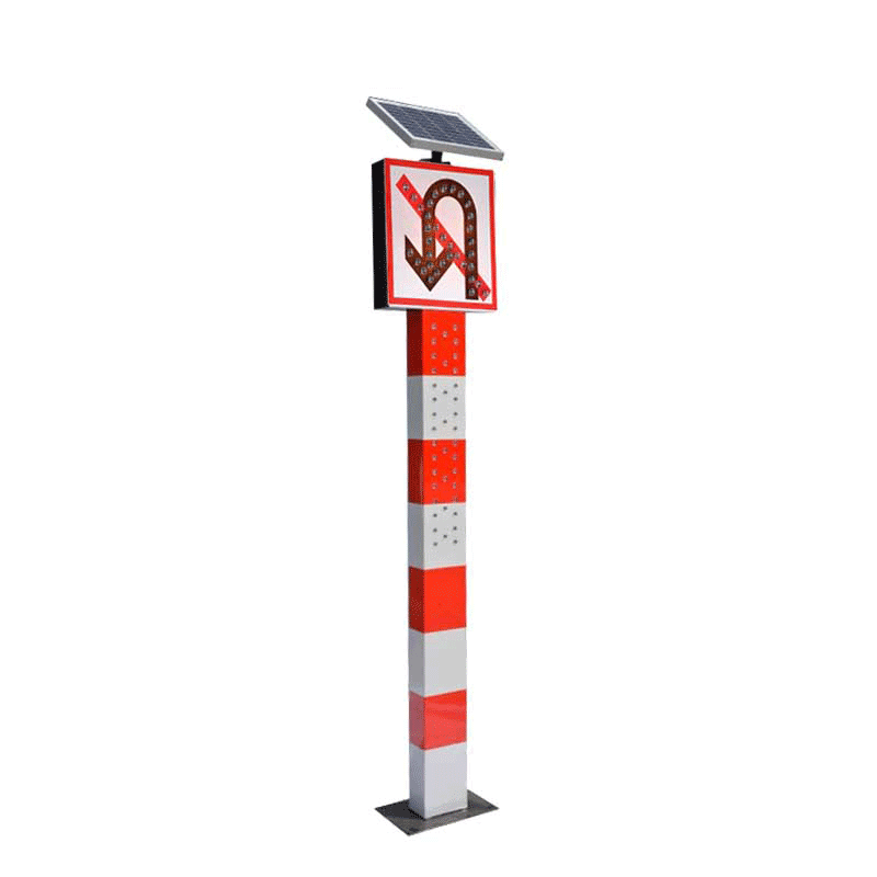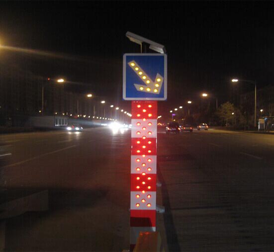太陽能交通警示柱:主動發光誘導指示明確道路狀況,讓司機能在遠處就對路況有所了解,起到更強的警示警告作用,以減少道路交通事故,降低人們生命財產損失。