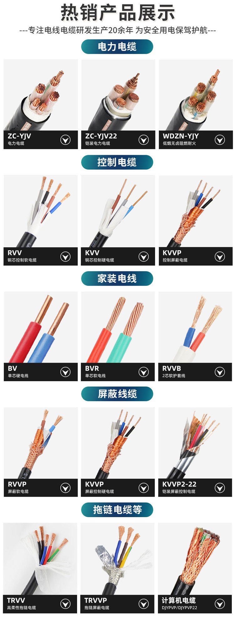 RVV國標純銅電線電纜廠家電纜線2 3 4芯1 1.5 2.5 6平