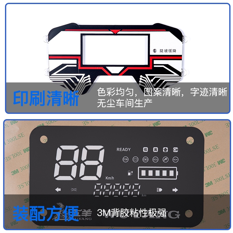 徐州元亨絲印供應豐縣電動車儀表面板 數(shù)顯面板貼電量