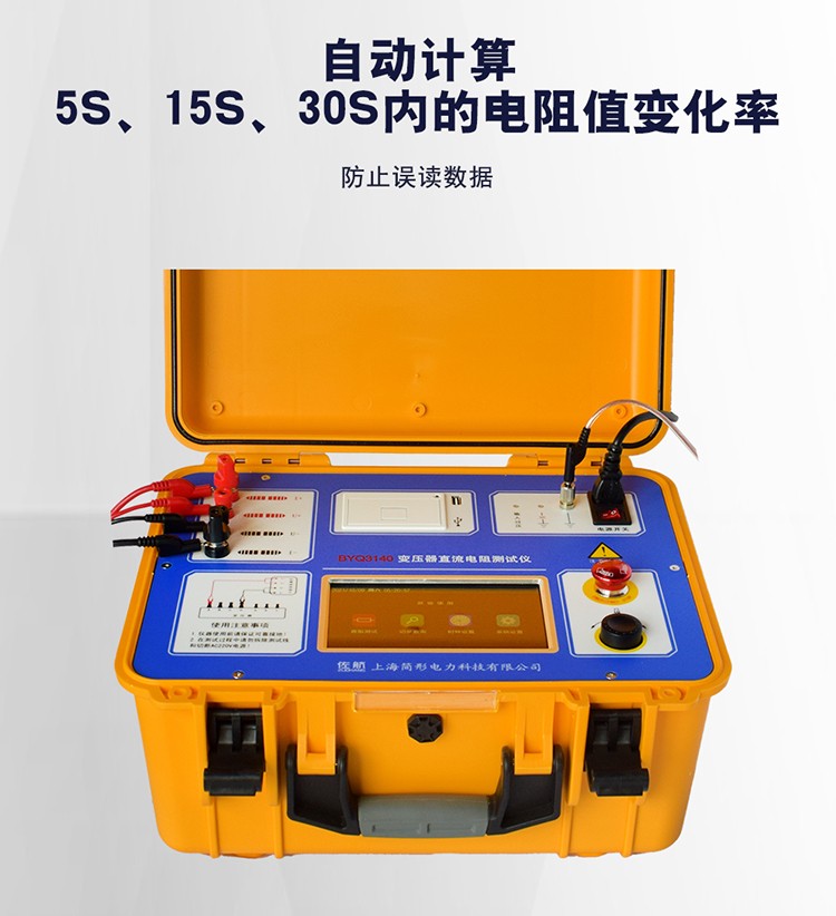 對于電力系統來講,變壓器是系統中核心設備,因此變壓器的長期、可靠運行關系到整個系統的穩定性和可靠性。變壓器的直流電阻是變壓器制造中半成品、成品出廠試驗、安裝、交接試驗及電力部門預防性試驗的必測項目,能有效發現變壓器線圈的選材、焊接、連接部位松動、缺股、斷線等制造缺陷和運行后存在的隱患。為了滿足變壓器直流電阻快速測量的需要,我公司利用自身技術優勢研制了佐航 BYQ3140 變壓器直流電阻測試儀。該儀器屏幕采用真彩色大屏幕高分辨率液晶顯示屏,觸控加飛梭旋鈕操作,方便現場使用。具有中文菜單提示功能,操作簡便直觀,測試速度快,準確度高,量程寬。