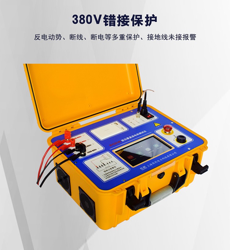 3. 儀器具有380V錯接保護、反電動勢保護、斷線保護和斷電保護等多種保護功能,以及接地線未接報警功能。