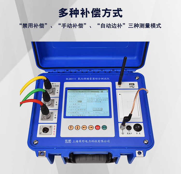 5  可同時測量三相氧化鋅避雷器的電氣參數,并可自動補償相間干擾;也可單相測量,支持B相接地的PT二次電壓作為參考電壓;當被測相與參考電壓相別不同時,可自動計算補償角度。