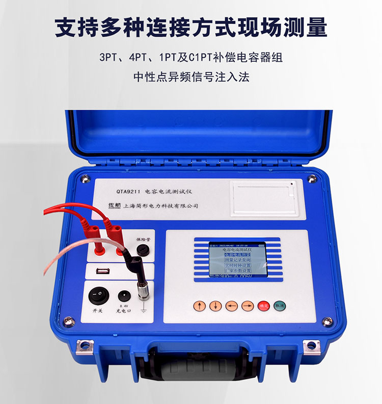 2      支持3PT連接方式、兩種4PT連接方式、1PT連接方式現(xiàn)場電容電流測量。