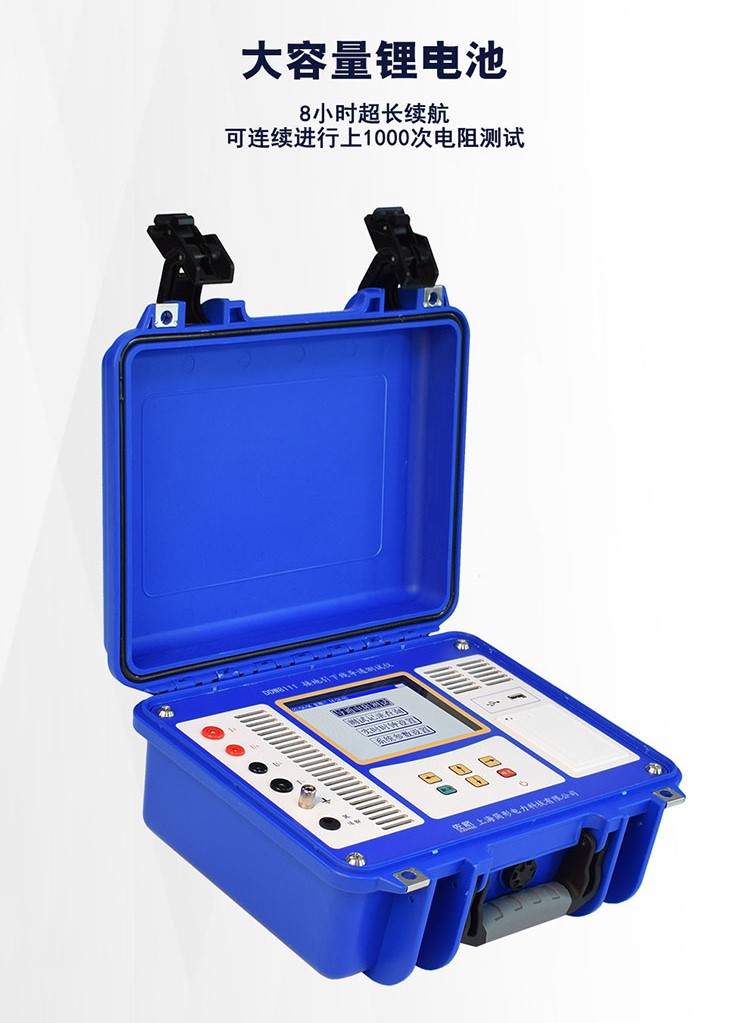 7. 鋰電池供電或者220V交流供電自適應,一次充電,可連續進行上千次導通電阻測試,測試過程簡單、方便。