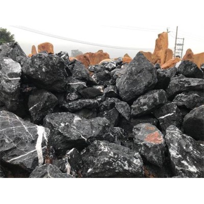 野山石,原來它也不但只是野外的一堆石頭而已,經過風吹日曬雨淋,表面顏色偏黑.斑駁,有一種常年在野外的滄桑感和老舊感。老黑石,帶有青苔,沉睡,被世人喚醒自然石假山石造型在自然的世界中,沒有一個石頭的形狀是可以重復的,那些形狀很美的石頭,至少其主體是出自大自然。由于自然現象形成的種類怪石就很多了。自然石假山石造型雖然形狀各異,但都有一個共同點:不是為了美而造就的,而是造就了美。在日式枯山水中運用的多?;螯c綴,或陪襯,或假山運用。印象深的莫過于石與石組的布局與配合,在一塊空曠不大的地方,用白色砂礫耙出波紋,用幾組天然石作為役石(角色石):野山石、黑山石、筋紋石、黑卵石等,創作了枯山水石組。在日式庭園中,樹木與草皮、與大小野山石、土坡、砂礫的組合是講究的。多種手法都是對自然意境和情趣的摹擬,都可以使人得到陶冶與愉悅。像枯山水這種日本的造園手法,真可以使人領略到佛禪的意境