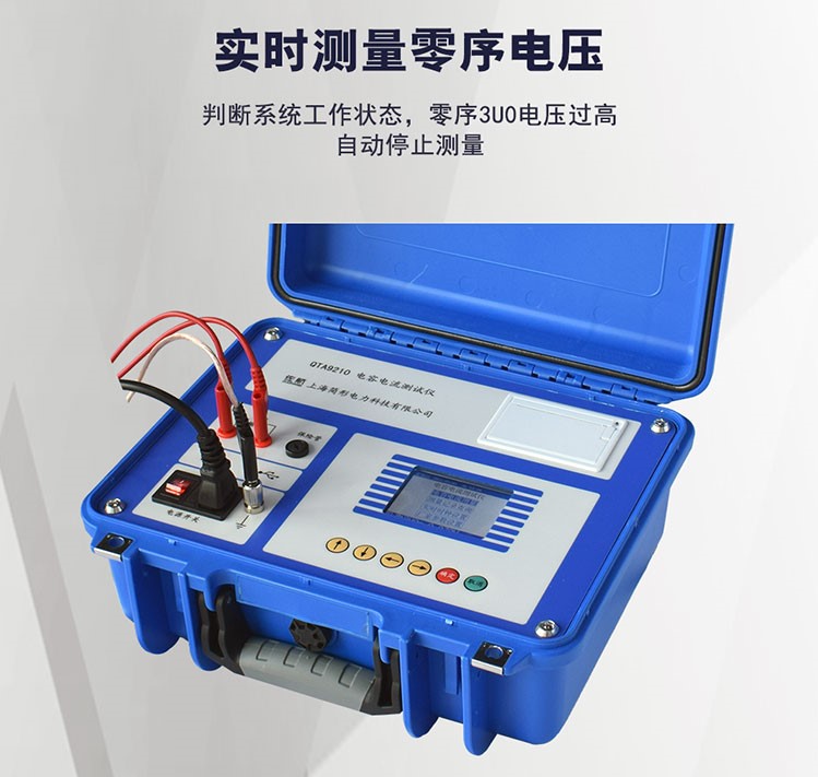 佐航QTA9210電容電流測試儀采用全新硬件結構和速度更快的ARM處理器及AD轉換器,內置全新的全數字變頻逆變電源,效率高、發熱量小、體積小、重量輕,更加便于攜帶和現場測試。在任何時刻(包括測量過程中)都可準確測量零序3U0電壓,從而便于用戶判斷系統工作狀態;并且在測試過程中,如果零序3U0電壓過高可自動停止測量過程。