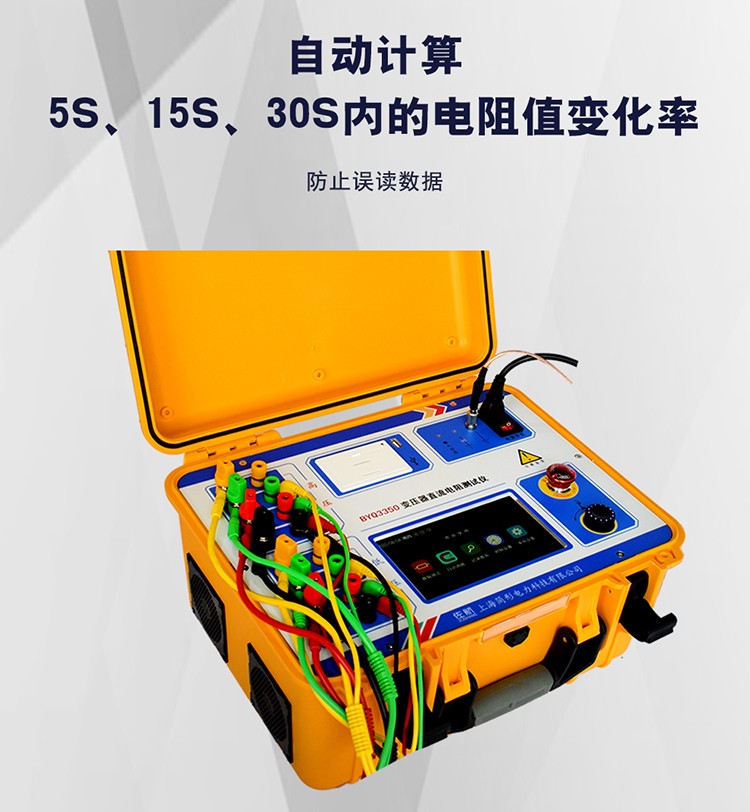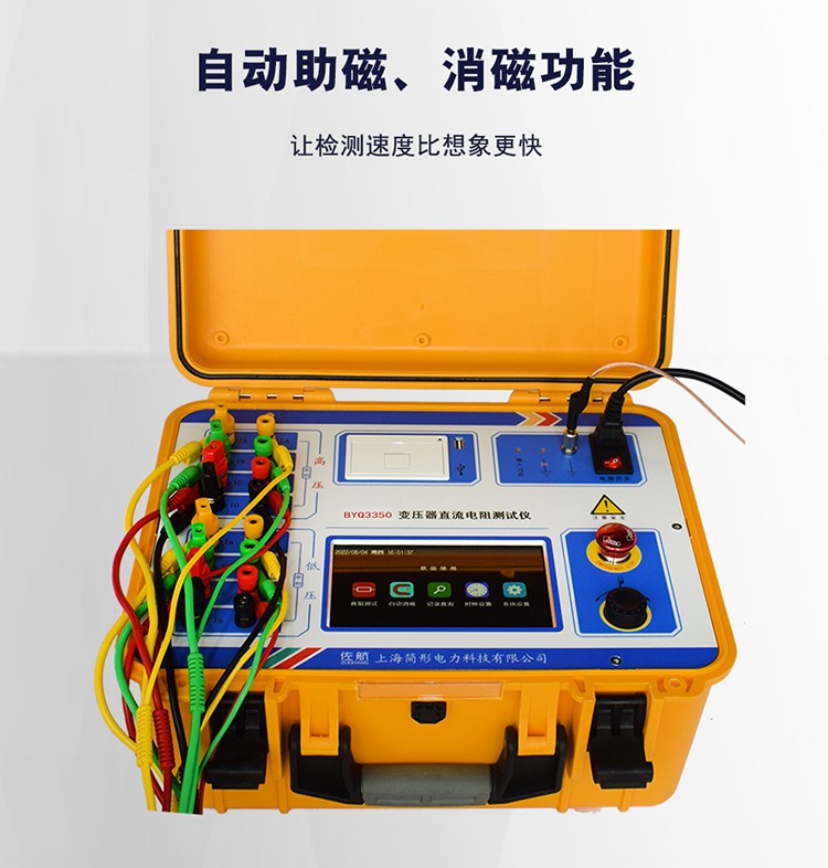 變壓器的直流電阻是變壓器制造中半成品、成品出廠(chǎng)試驗(yàn)、安裝、交接試驗(yàn)及電力部門(mén)預(yù)防性試驗(yàn)的必測(cè)項(xiàng)目,能有效發(fā)現(xiàn)變壓器線(xiàn)圈的選材、焊接、連接部位松動(dòng)、缺股、斷線(xiàn)等制造缺陷和運(yùn)行后存在的隱患。為了滿(mǎn)足變壓器直流電阻快速測(cè)量的需要,我公司利用自身技術(shù)優(yōu)勢(shì)研制了佐航 BYQ3350 變壓器直流電阻測(cè)試儀。該儀器是集 助磁法測(cè)試、三相測(cè)試( Yn ,Y Y 、△)和 消磁功能于一體的新一代快速測(cè)試儀,是測(cè)量大型電力變壓器直流電阻的理想設(shè)備。屏幕采用真彩色大屏幕高分辨率液晶顯示屏,觸控加飛梭旋鈕操作,方便現(xiàn)場(chǎng)使用。具有中文菜單提示功能,操作簡(jiǎn)便直觀,一次接線(xiàn)完成所有直阻測(cè)試項(xiàng)目,測(cè)試速度快,準(zhǔn)確度高,量程寬。