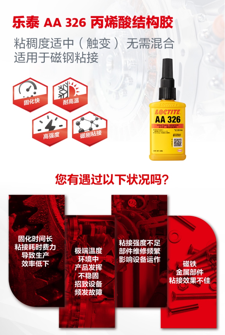樂泰loctiteAA326結構膠 中等粘度膠粘劑 磁鋼揚聲器抗震結構粘接劑