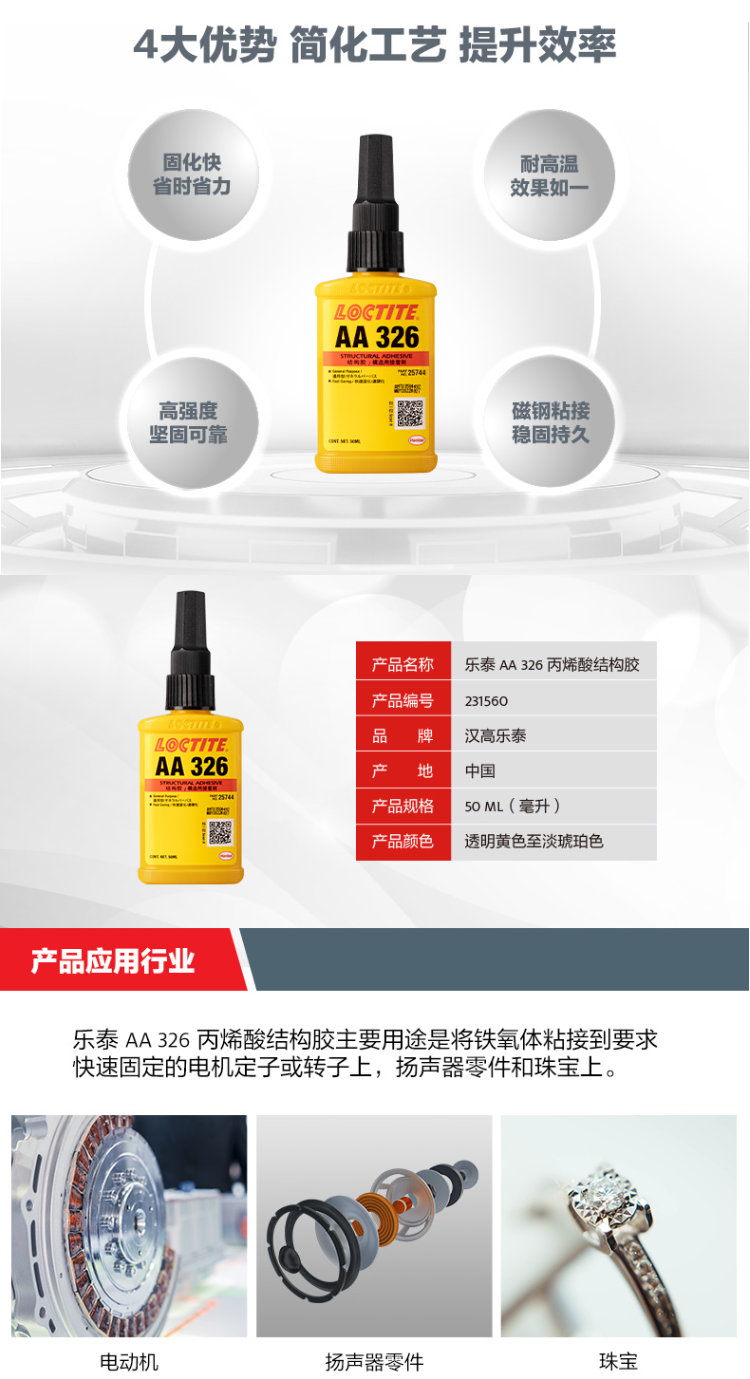 更新信息 快采購網供應商寧波市格洛國際貿易有限公司供應樂泰loctiteAA326結構膠 中等粘度膠粘劑 磁鋼揚聲器抗震結構粘接劑,為您提供詳細的產品報價、參數、圖片等商品信息,本產品于2025-10-16 13:56更新,主要更新內容為:產品類別、產品參數、產品價格、產品圖片等信息。如需進一步了解樂泰loctiteAA326結構膠 中等粘度膠粘劑 磁鋼揚聲器抗震結構粘接劑詳細信息,請與廠家直接聯系,并說明是在快采購網看到這條商機的。