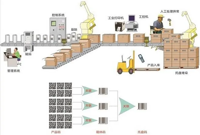 產線賦碼系統對產品在包裝過程中逬行在線動態賦碼及采集,實現產品及其包裝物的身份數字化,并按包裝規格實現單品、箱、托等不同層級的閉環式關聯,使賦碼采集過程更為便捷,達到產品信息全程可記錄、可追溯、可管控、可召回、可查詢。
