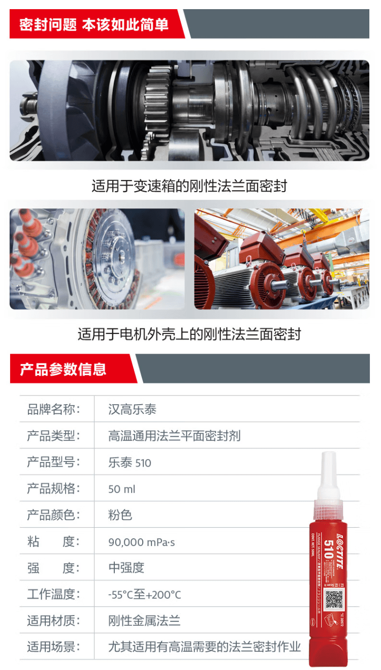 樂泰510法蘭密封膠,可替代墊片,耐高溫,適合剛性法蘭,尤其適用于有高溫需要的法蘭密封作業。