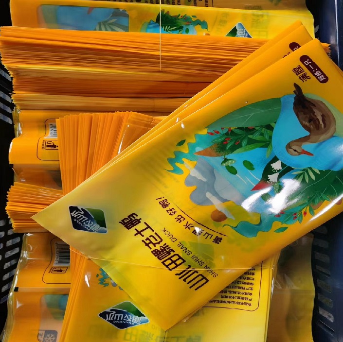 6、材質:PET/PET/CPP三層復合特性:防潮,耐高溫,易封性;用途:粉類包裝,醬油,液體,洗發液。