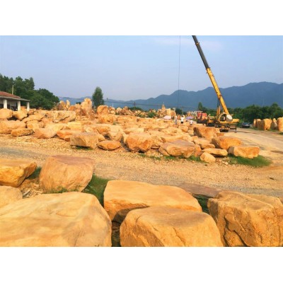 • 黃色石頭造景公園刻字黃蠟石點綴