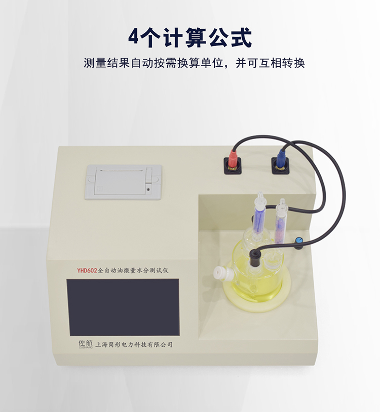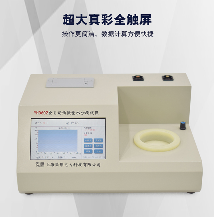 佐航YHD601微量水分測定儀,采用卡爾—費休庫倫滴定法,對不同物質進行微量水分的測定,是可靠的方法。微量水分測定儀成功的應用了這一方法,采用了自動控制電路,32位嵌入式微處理器作為主控核心,嵌入迷你型操作系統。從而使該儀器工作更可靠,使用更方便。其分析速度快、操作簡單、精度高、自動性強等特點。廣泛應用于石油、化工、電力、鐵路、農藥、醫藥、環保等部門。