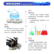 用戶可根據不同源水濁度,不同季節和不同反映條件,按商品重量計,將該產品配成3-5%的水溶液,通過混凝實驗確定每千噸水投加范圍。