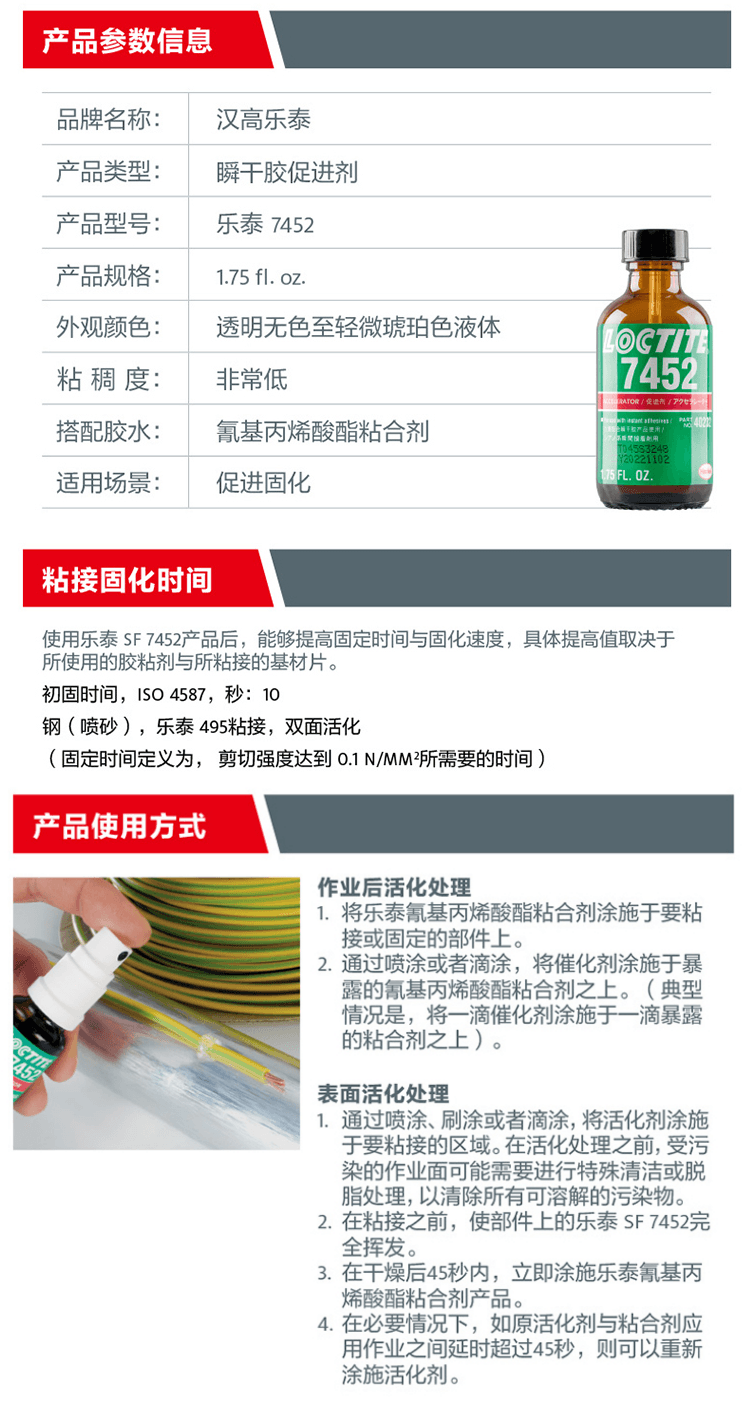 漢高樂泰SF7452促進劑固化多余的膠粘劑避免瞬干膠白化