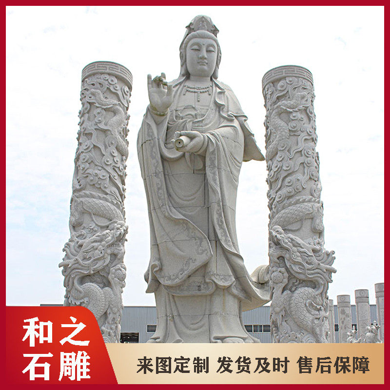 • 漢白玉石雕觀音佛像大型寺廟 6.8米石雕滴水觀音像 寺