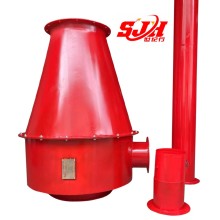 火星捕集器一般安裝在除塵器進(jìn)口前,包括殼體,殼體兩側(cè)分別設(shè)有進(jìn)風(fēng)口和出風(fēng)口。殼體下部與集灰桶連接,集灰器下部設(shè)有出灰機(jī)構(gòu)。殼體安裝在支架上。火星捕集器主要有風(fēng)管、轉(zhuǎn)軸、小軸、膜片和旋轉(zhuǎn)導(dǎo)葉組成,通過(guò)軸承座支撐在出風(fēng)口上。當(dāng)風(fēng)速一定時(shí),裝在小軸上的活動(dòng)導(dǎo)葉隨著轉(zhuǎn)速的變化自動(dòng)改變其偏轉(zhuǎn)角。在煙道出口形成擋板,可以控制和調(diào)節(jié)排煙速度,可以碰撞和撲滅火星,起到防火作用。是一種經(jīng)濟(jì)、理想的煙道防火裝置。它具有火花、結(jié)構(gòu)簡(jiǎn)單、無(wú)需增加系統(tǒng)電阻、使用壽命長(zhǎng)等優(yōu)點(diǎn)。