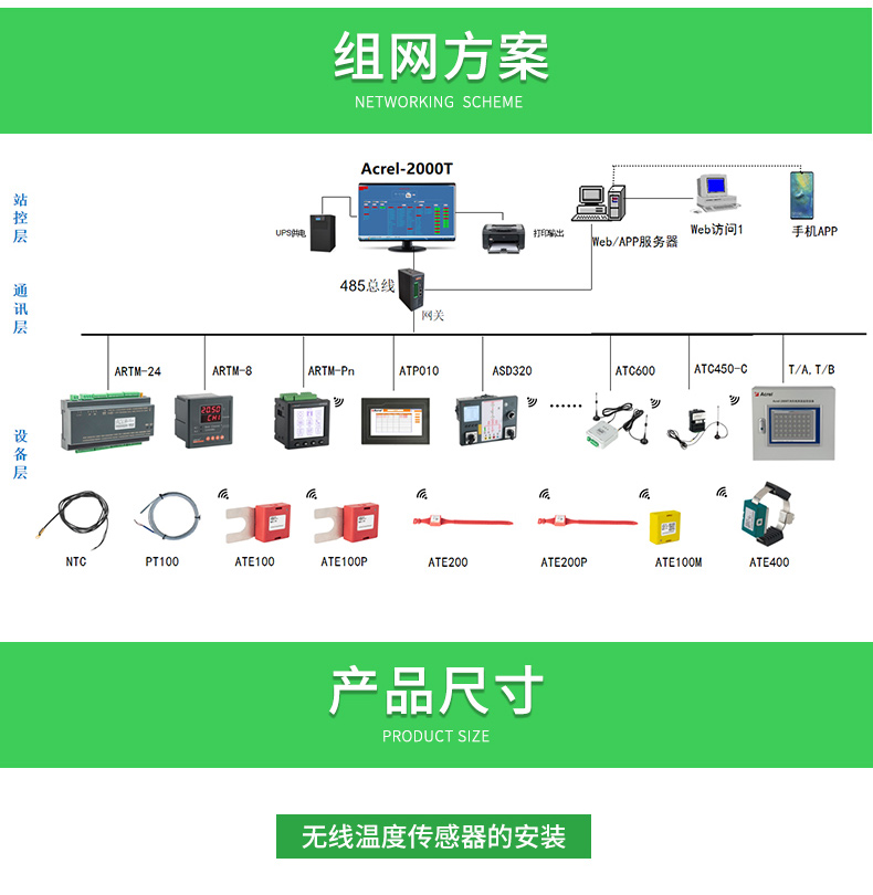 • 安科瑞ATE400電纜接頭無線測溫傳感器