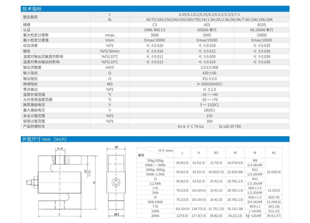 ◆合金鋼材料,鍍鎳,S型結(jié)構(gòu),膠密,拉向或壓向承載。