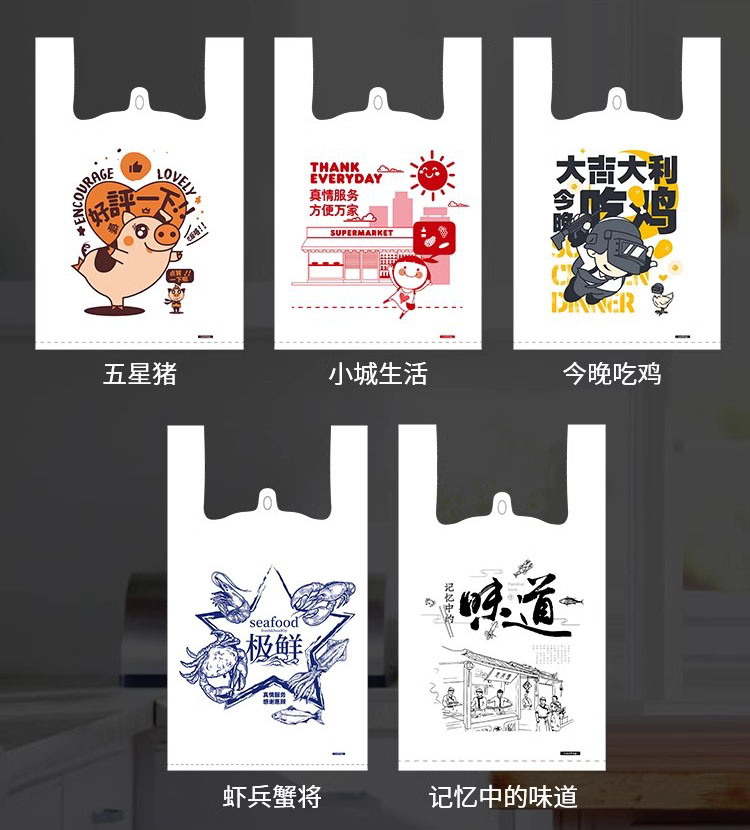 塑料背心袋是人們日常生活中常見的,不同的地區亦有不同的稱號,如馬夾袋、方便袋、廣告袋等等。背心袋被廣泛用于商場、超市、便利店、批發市場等地,且使用量巨大,也因此對生態環境造成了長遠的影響。