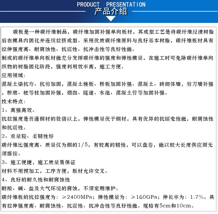 更新信息 快采購網供應商河北盛仕銘新材料有限公司供應單向碳纖維板 碳纖維板 路橋碳板加固 建筑碳纖維板,為您提供詳細的產品報價、參數、圖片等商品信息,本產品于2025-10-25 14:41更新,主要更新內容為:產品類別、產品參數、產品價格、產品圖片等信息。如需進一步了解單向碳纖維板 碳纖維板 路橋碳板加固 建筑碳纖維板詳細信息,請與廠家直接聯系,并說明是在快采購網看到這條商機的。