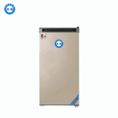防爆單門電冰箱只有一扇門,沒有專門的冷凍室。其冷凍室箱體直接由蒸發器構成,采用盒式結構,帶有小門,安裝在內膽的上部,其內溫度一般為-12~-6℃,可供制冰,冷凍化學品。蒸發器下面是冷藏室,中間無隔熱設施。冷藏室靠空氣的自然對流得以降溫,溫度一般控制在0~10℃,內有感溫探頭,擱架,溫度控制器安裝于外部的防爆腔體內 。