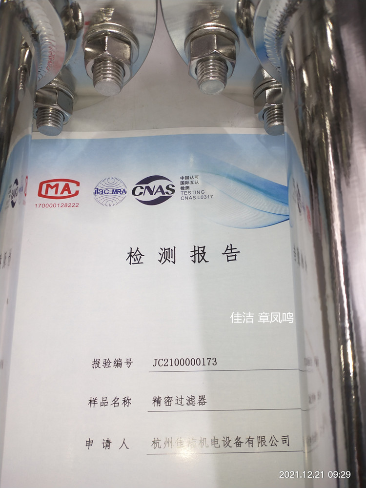 杭州佳潔長期生產食品級不銹鋼過濾器,產品經第三方檢測認證,公司生產的濾芯濾材經第三方按FDA標準檢測認證,各個微米,顆粒物數量經第三方檢測認證,除塵、除油水、除菌效果經第三方檢測認證。杭州佳潔提供不銹鋼過濾器GMP認證、AIB認證材料,幫助企業順利通過生產認證考核。