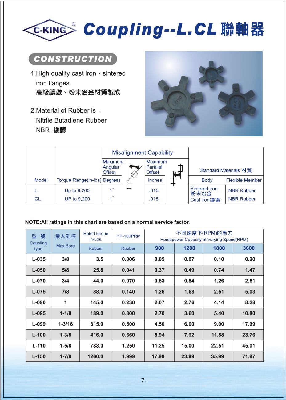 臺灣C-KING彈性聯軸器膠墊L 系列