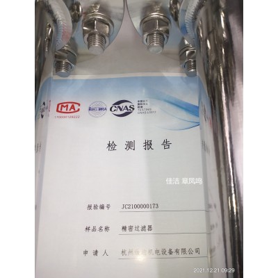 杭州佳潔長期生產食品級不銹鋼過濾器,產品經第三方檢測認證,公司生產的濾芯濾材經第三方按FDA標準檢測認證,各個微米,顆粒物數量經第三方檢測認證,除塵、除油水、除菌效果經第三方檢測認證。杭州佳潔提供不銹鋼過濾器GMP認證、AIB認證材料,幫助企業順利通過生產認證考核。