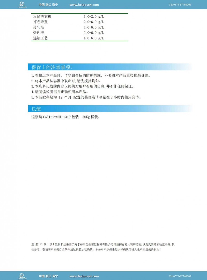 1、高濃度,易于配制成多種不同的退漿產品;