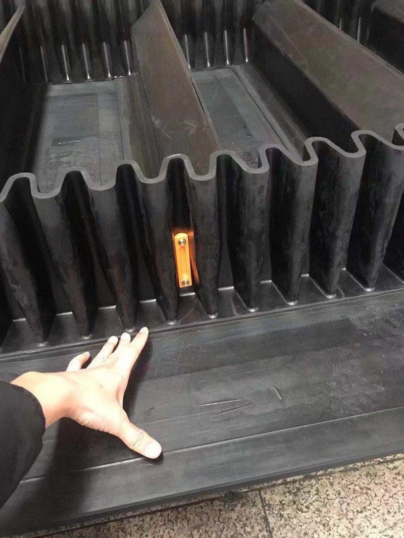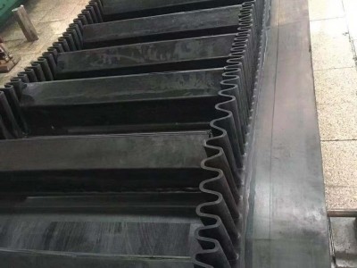 結構:擋邊輸送帶由基帶 裙邊 橫隔板三部分組成。基帶可分為分層織物輸送帶 鋼絲繩芯輸送帶或金屬網芯輸送帶等;擋邊分為SW型;隔板分為TTC型等
