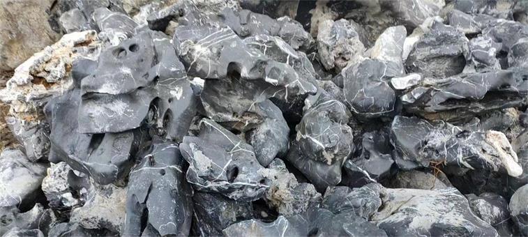 • 枯水山庭院草地點綴石黑山石廠家