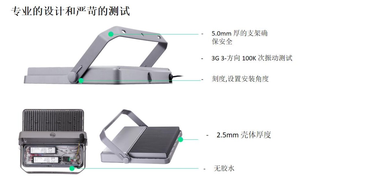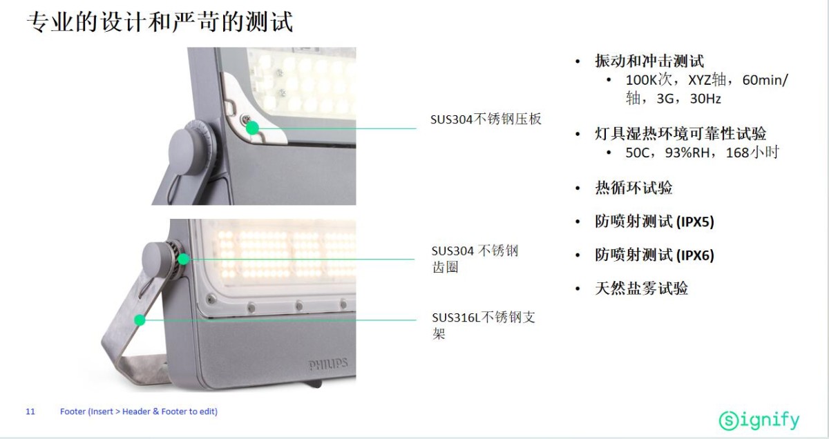 壓鑄鋁殼體和支架BVP431/BVP432: 500小時抗鹽霧噴涂BVP433: 1000小時抗鹽霧噴涂,適合嚴苛環境如港口碼頭作業整燈IP66/IK08防護可靠的質量和穩定的性能