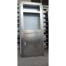 1.主動防火閘口, 設備于管道體系各期間管道結尾樓層,固定于樓板上,當管道內煙感器偵測到煙霧時,防火閘口主動封閉以隔絕焰火。參數為:原料SUS304,防火時效2小時,門框厚度3.0mm,門板厚度3.0mm,主動機件為感應式,電機馬達傳動。