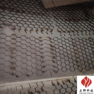 5. 涂抹;操作人員需配備勞保手套、口罩、眼鏡及保護(hù)帽等防護(hù)用品,如果在高空作業(yè)需要佩戴合格的帶,從桶內(nèi)取出適量陶瓷涂料(每次約兩公斤為宜),需用力涂抹在焊接好的龜甲網(wǎng)上,保證不能有空洞或壓不實(shí)的現(xiàn)象,以保證耐磨陶瓷涂料緊密的和龜甲網(wǎng)及鋼板結(jié)合在一起,垂直面和頂部需一次成型,不能分層涂抹,以防止出現(xiàn)起層現(xiàn)象。