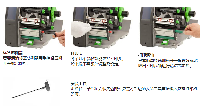 條碼打印機(jī)的機(jī)構(gòu)料件皆以高品質(zhì)的材料制作且在外型及功能上達(dá)到完美的協(xié)調(diào)性。多元的周邊配件和軟件可提供客制化的解決方案。