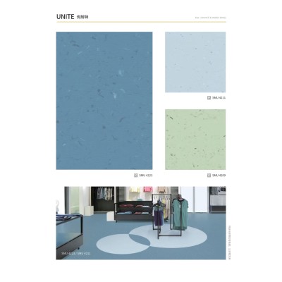 1、同質透心結構的高耐久性即使較大的人流量也不會磨損,耐磨等級T級