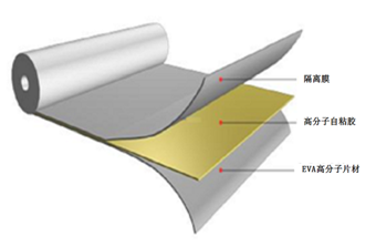 2、EVA自粘防水板是由EVA合成高分子片材、高分子熱熔膠及隔離膜一次性復(fù)合而成的一種自粘性防水板。